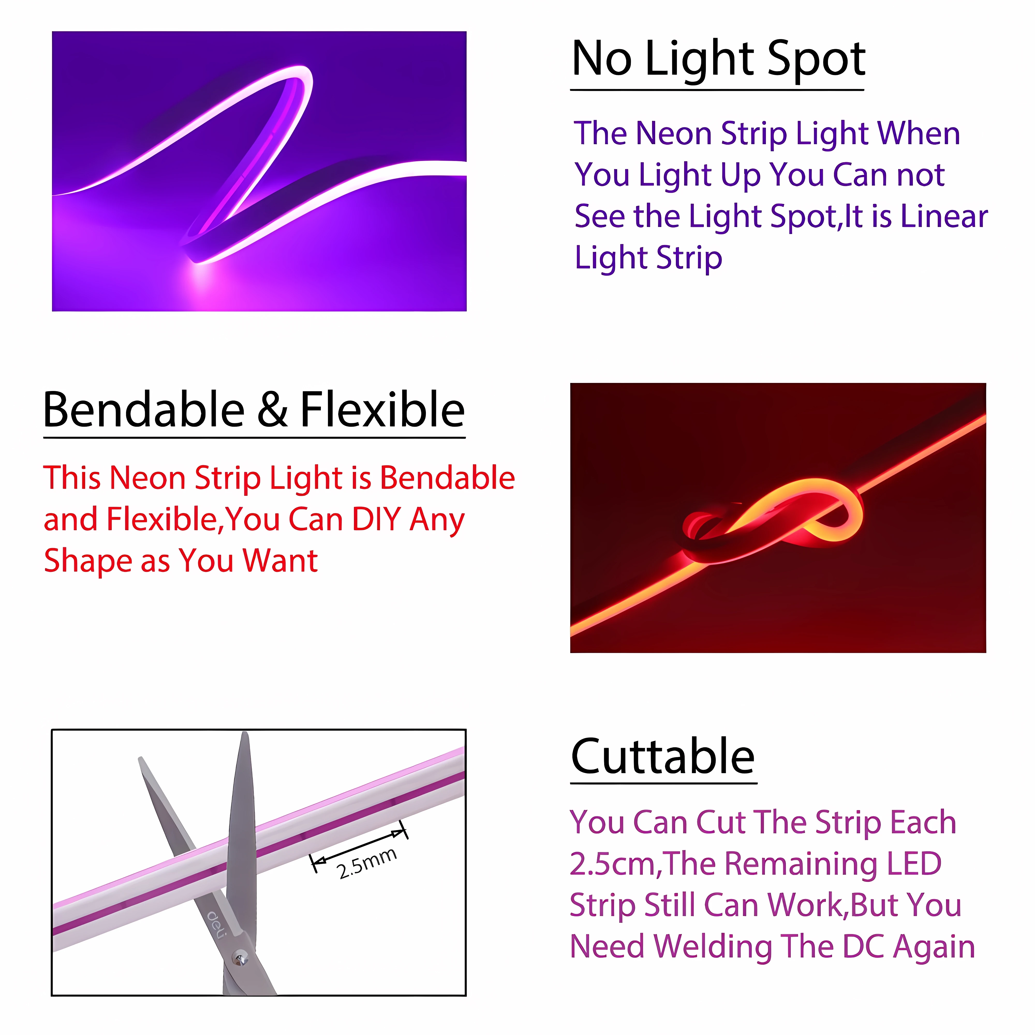 It can be cut every 2.5 cm and extended with connectors.