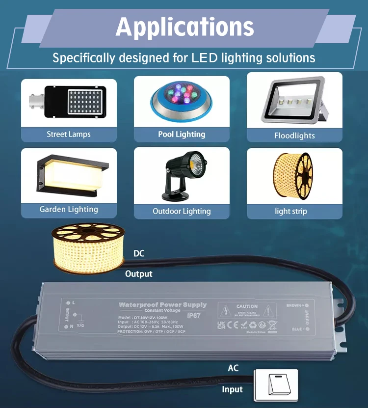 Wide Applications: Ideal for a variety of outdoor lighting applications, including LED lights, advertisements, signs, light boxes, and light strips, this power supply is a versatile solution for your lighting needs.